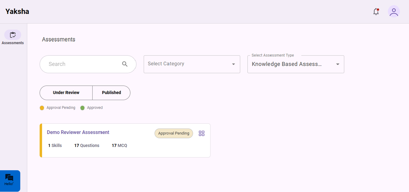 3. On lading to the Assessmnet platformk click on the assessment to be reviewed