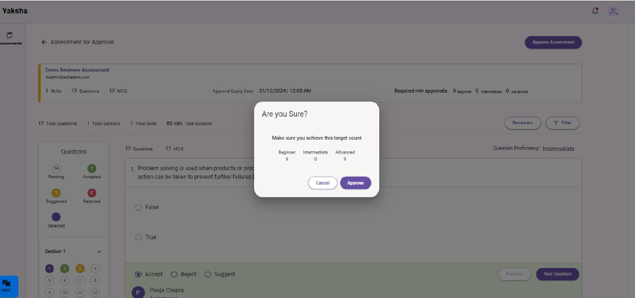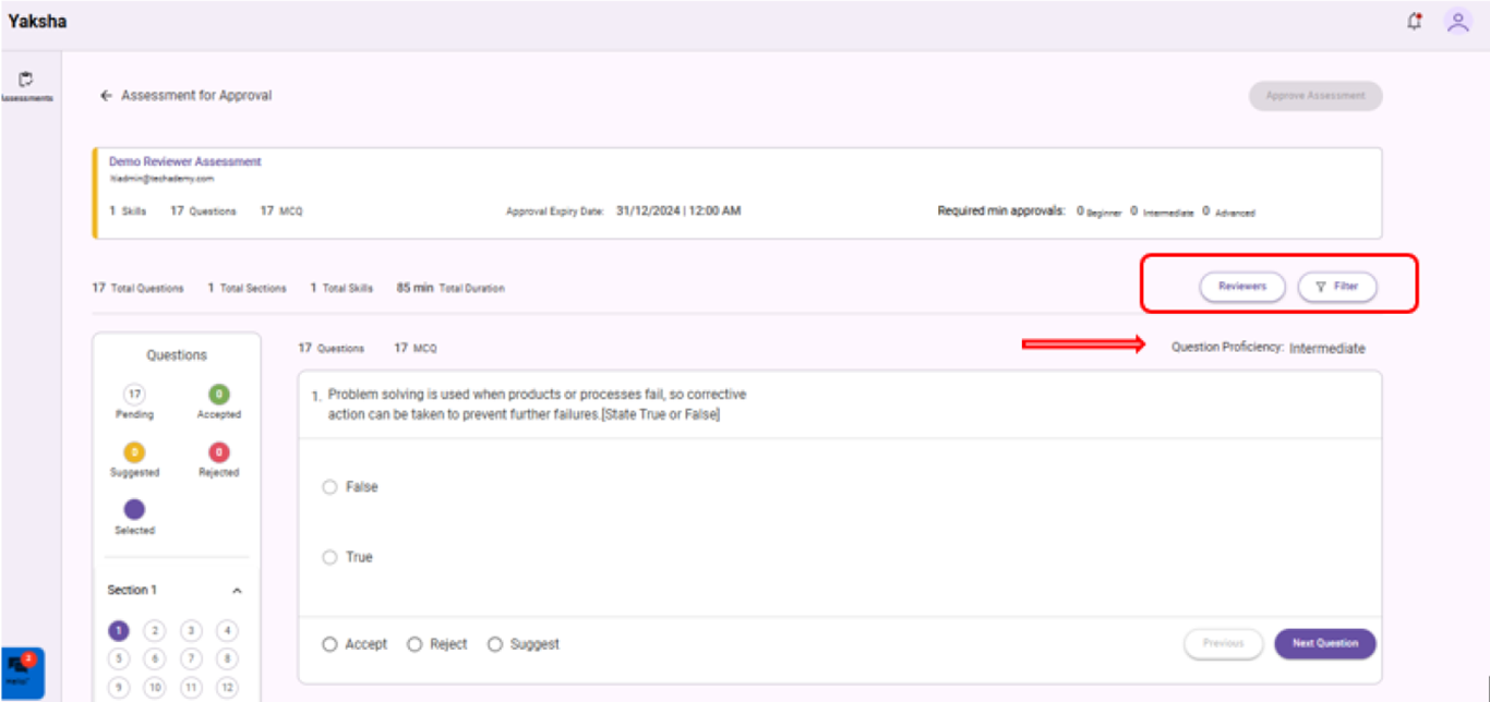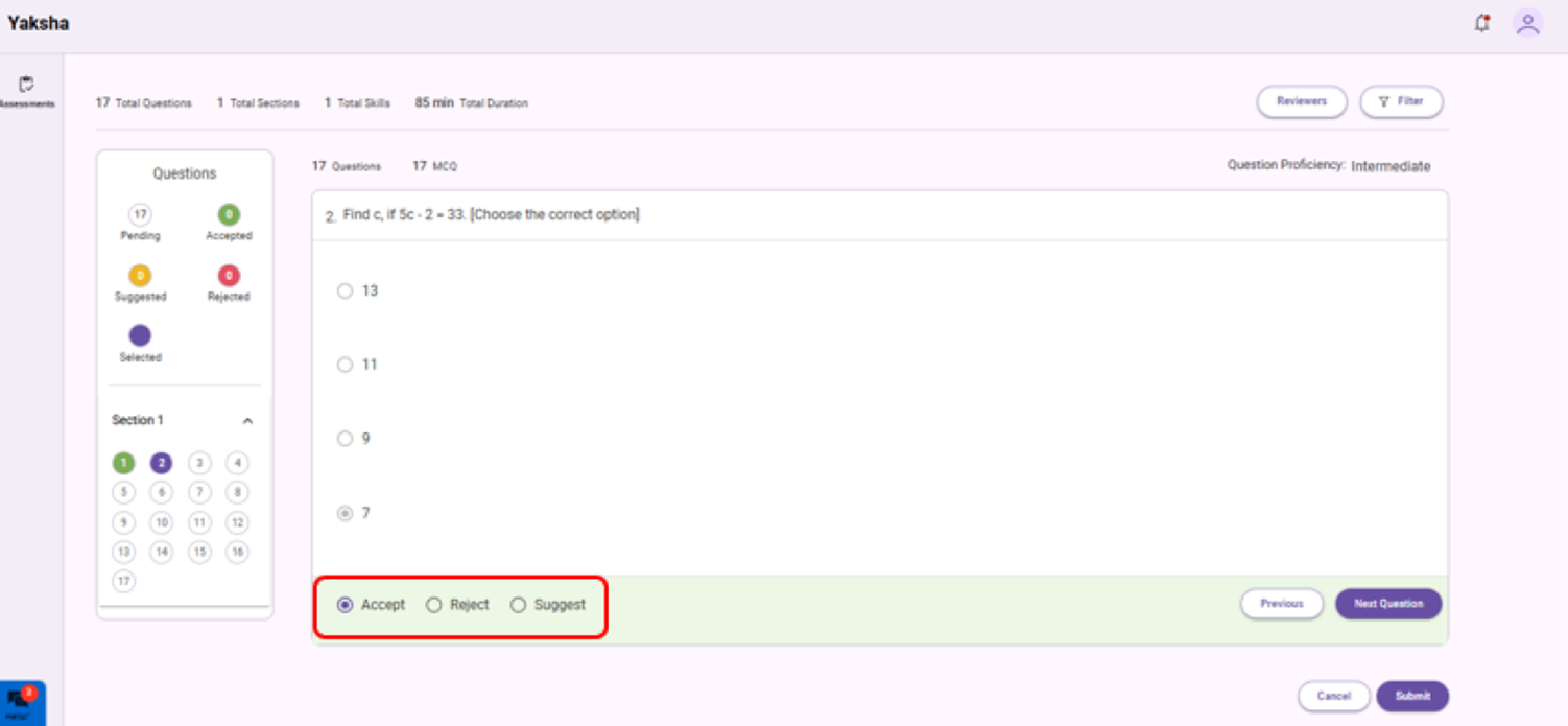 5. Each question can be accepted or rejected and suggested using the button provided.