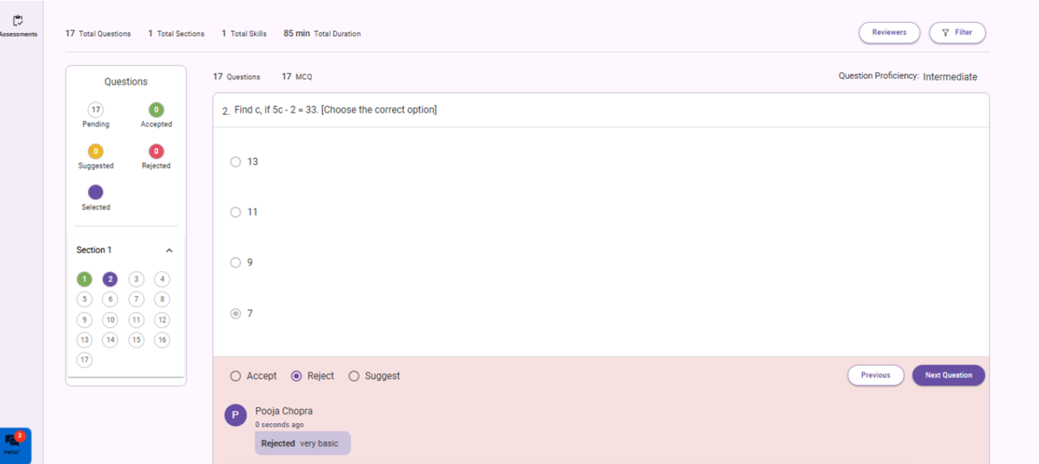 6. Use the Next and Previous button for accessing the listed questions and submit button to submit review for that particular. question