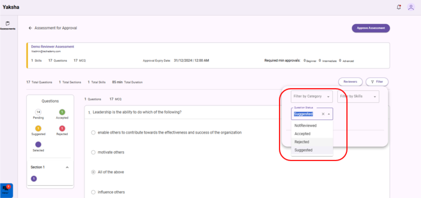 8. Use the filters provided for viewing pending, accepted, suggested and rejected questions.